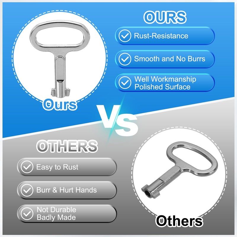 - Practical Tool: This utility key is compact enough to be attached to a keychain for easy portability. It doubles as a wrench and can also be utilized to open toolbox doors and electrical cabinet doors. It is particularly well-suited for use on doors and windows in public settings
