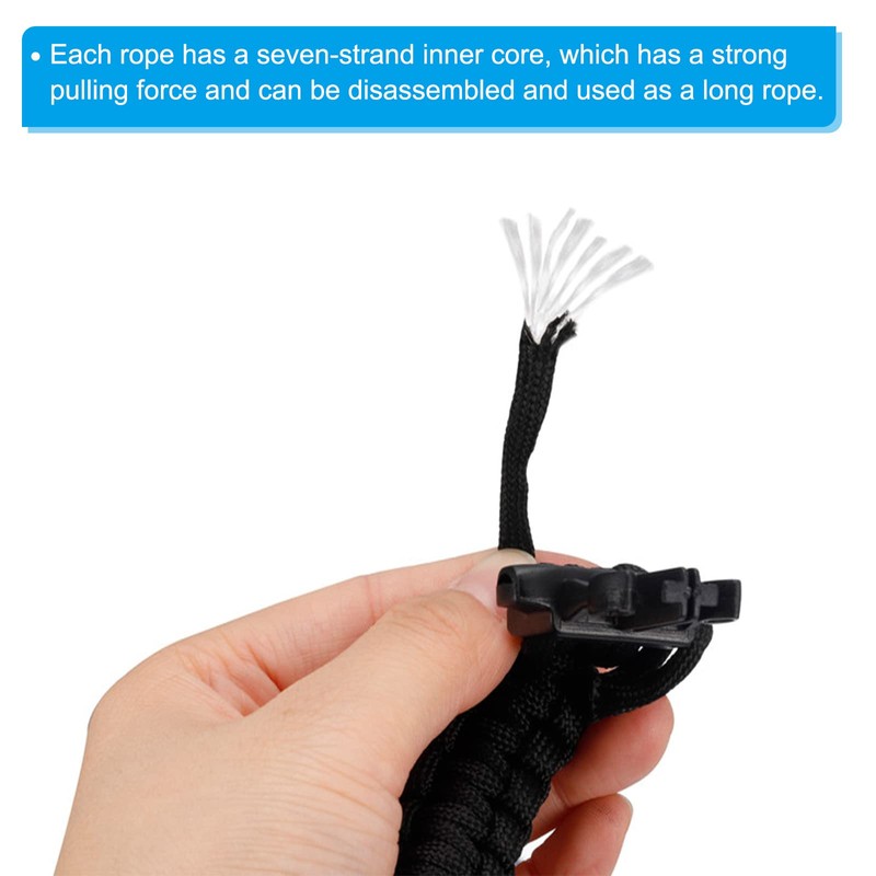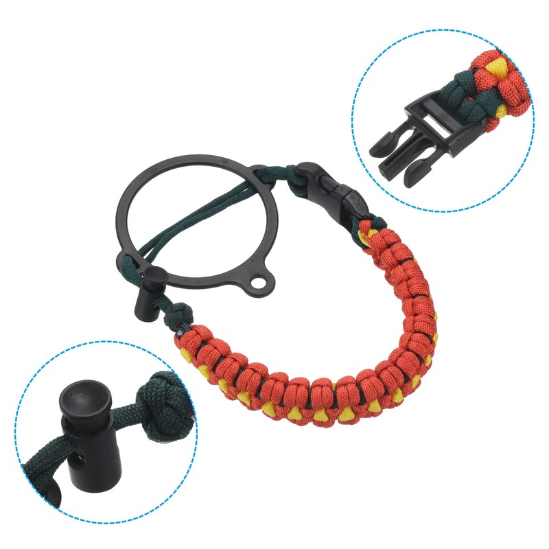 1. The paracord handle has a toggle to tighten the paracord under the plastic ring.