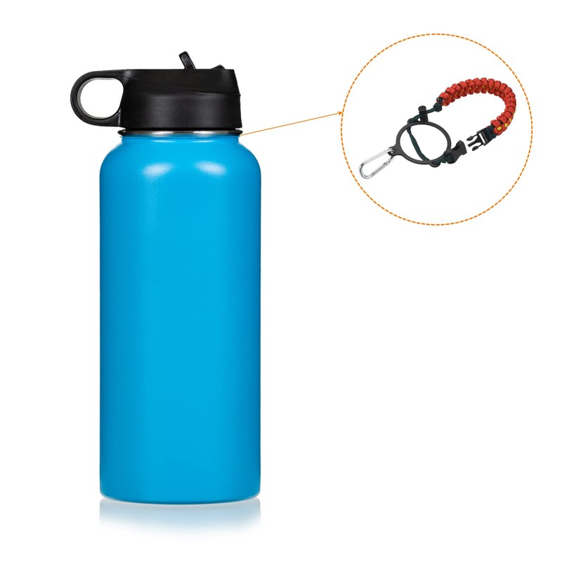 - Application: The handles are great for slipping around your wrist to make it easier to carry multiple things, for you to get a better grip on, etc. It features a flexible, comfortable strap, a hook and a small loop within the collar. All of these provide lots of options for carrying a water bottle at amusement parks. Keeps those awesome bottles from hitting the floor! Fits most of your glass, plastic and stainless bottles.