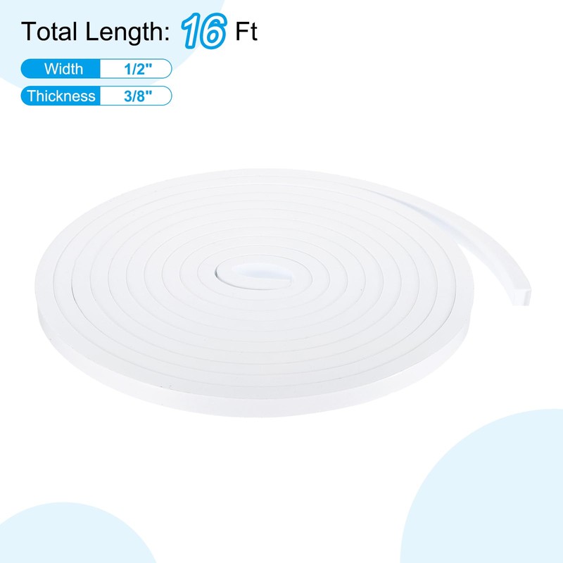 - Material: High Density Foam; Total Length: 16 Ft; Width: 1/2 inch; Thickness: 3/8 inch; Package List: 1 Roll x Weather Stripping
