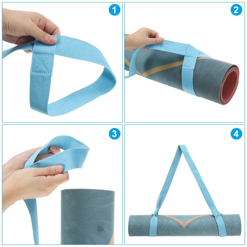 - Instruction: Roll up the yoga mat into a cylindrical shape, securely fasten the rolled mat with the yoga mat strap, then hang it over your shoulder to carry the yoga mat easily without it slipping.