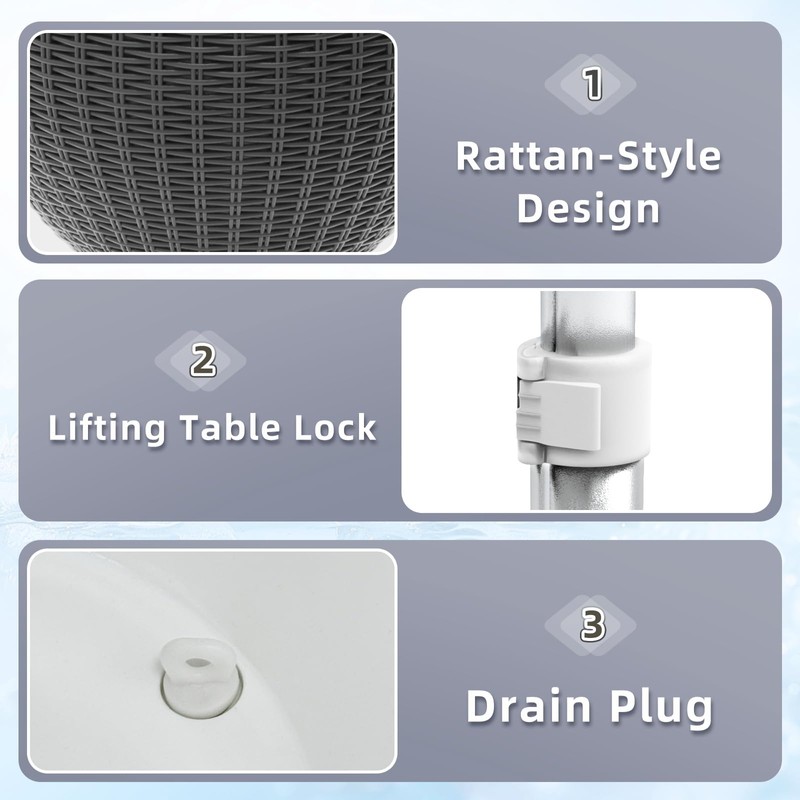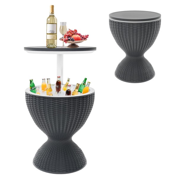 - 【Durable & Weather-Ready】: Built with sun-resistant PP material and imitated wicker rattan style, this backyard decor piece withstands harsh weather without cracking. Outdoor cooler table design blends seamlessly with modern patio furniture, making it a chic addition to balcony setups or hot tub areas.