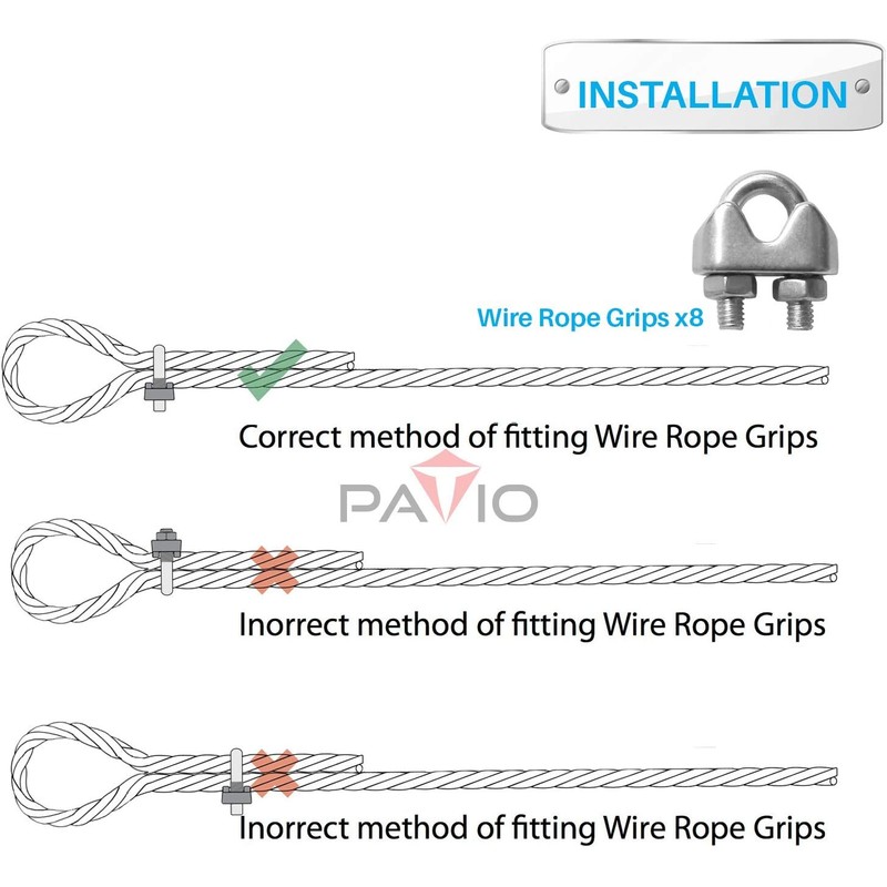 Patio Paradise Shade Sail Hardware Kit 31-Feet Wire Rope and 8 Pcs Clamps Coated Steel Cable 3/16" 7x19 Stand Core,Cable Railing Outdoor Light Guide Wire