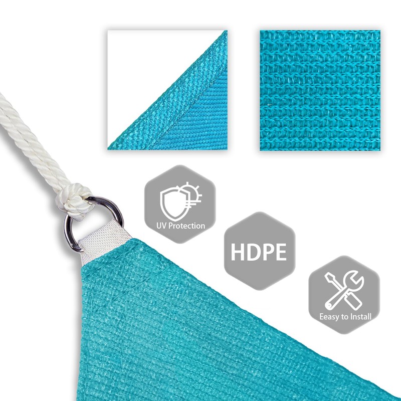 - Thick Material: Compared to other sun shade sails on the market, our virgin HDPE fabric undergoes 20000 hours of laboratory testing and it is proven to be 80% more durable than low purity HDPE under sun exposure. The fabric surface has undergone special treatment, making it more durable in both sunlight and rain.