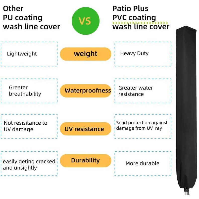 - GOOD MATERIAL:This Premium Whirly Cover is made of heavy duty 600D Oxford fabric and PVC coating that can support fade resistant, ultraviolet resistant, weather resistant, water resistant and rip resistant.So your airer stays looking like fresh
