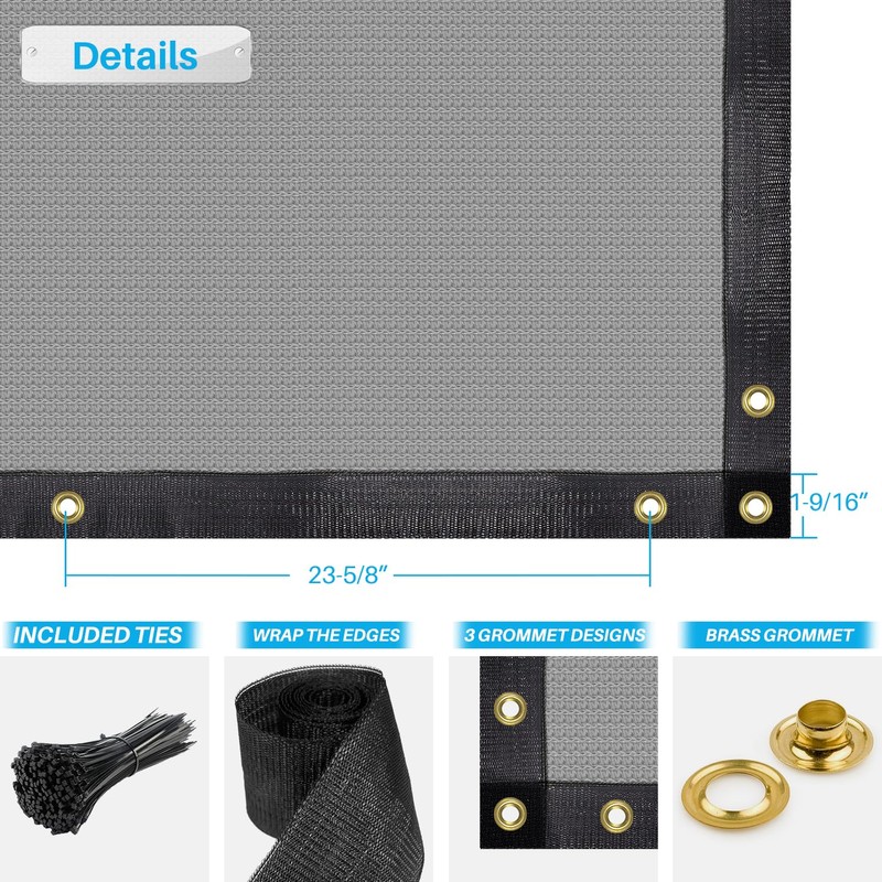 - More Durable: There are 3 brass grommets at each corner edge, not easy to rust, and the triangular distribution structure enhances the stability. Fabricated with widened black binding with double reinforced fabric on all edges to extend service life