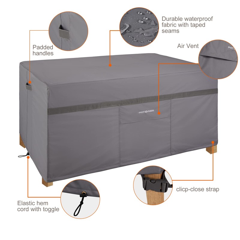 Heavy duty patio furniture covers table and chairs rectangleare easy to use and maintain. Patio table set covers have interior bound seams for strength, high-density stitching for durability, padded handles for comfort, matching webbing for a great look.