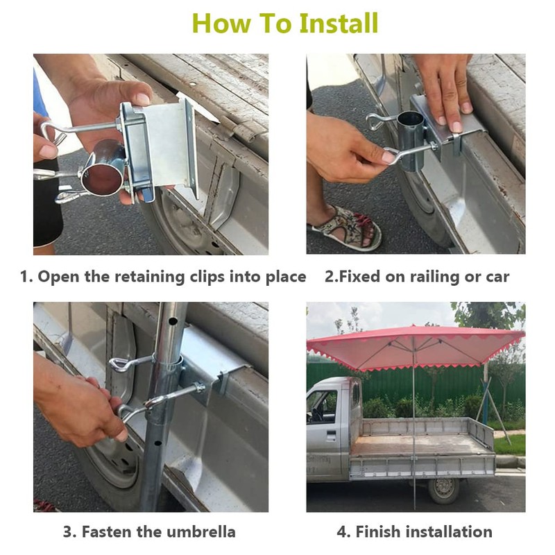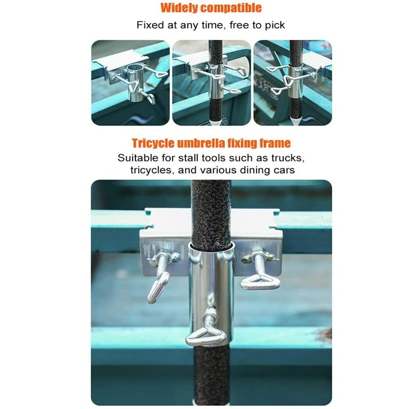 - [Heavy Duty Parasol Holder] - Simple Structure, Easy Installation. The umbrella clamp can be quickly installed. One-click, two buckles, and three tightening's, you can install it successfully. Umbrella stands are applicable for umbrellas, parasols, etc