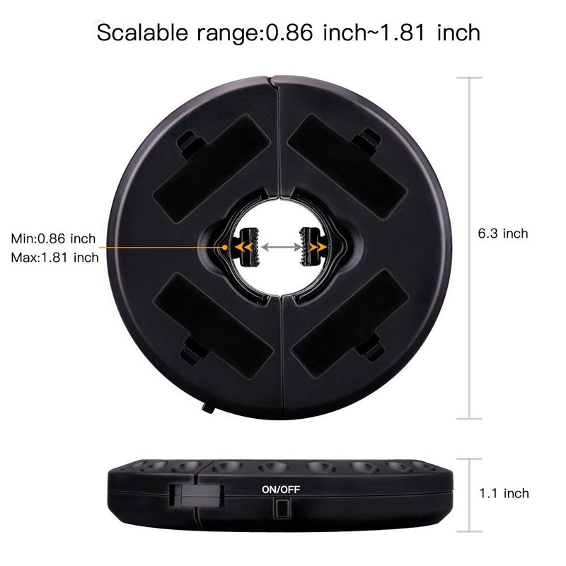 - [EASY TO INSTALL] No need for extra tools, easy to clamp to your umbrella with the built-in auto adjustable strong clamp, pole mounted, fit pole size from 0.86 inches to 1.81 inches in diameter. It also can be hung anywhere you want through two hooks