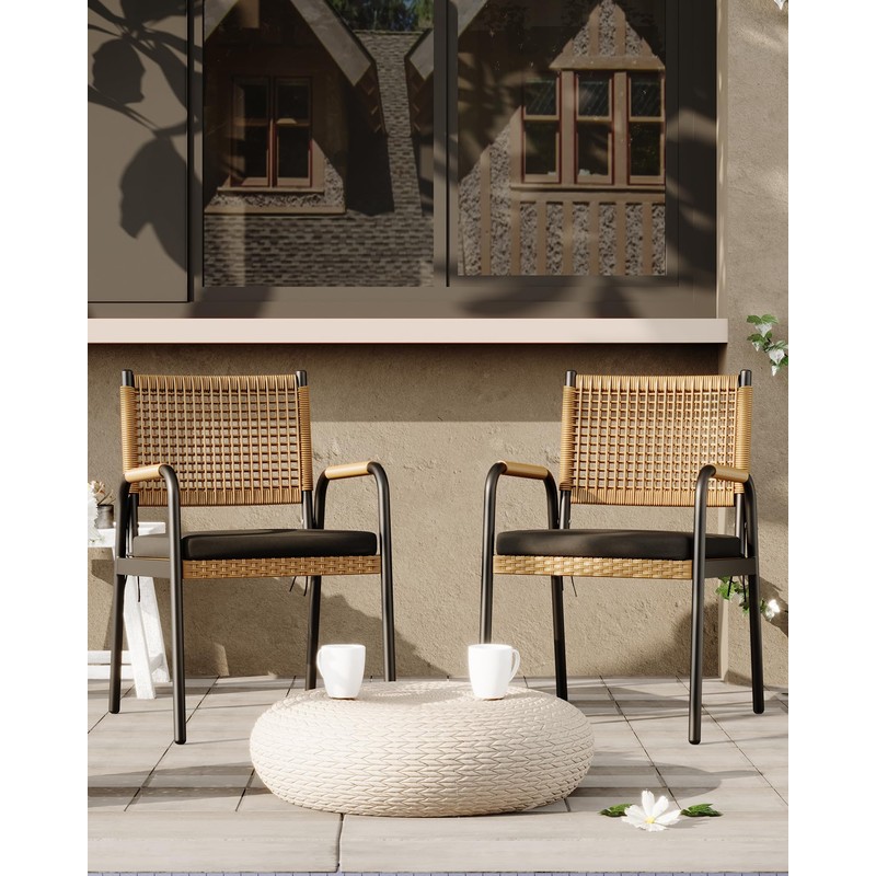 Patio Wicker Chairs Set of 2, Balcony Rattan Seats with Metal Frame, Bistro Chairs Set of 2 for Outdoor, Lawn, Deck, Porch, Balcony, Backyard and Garden, Black