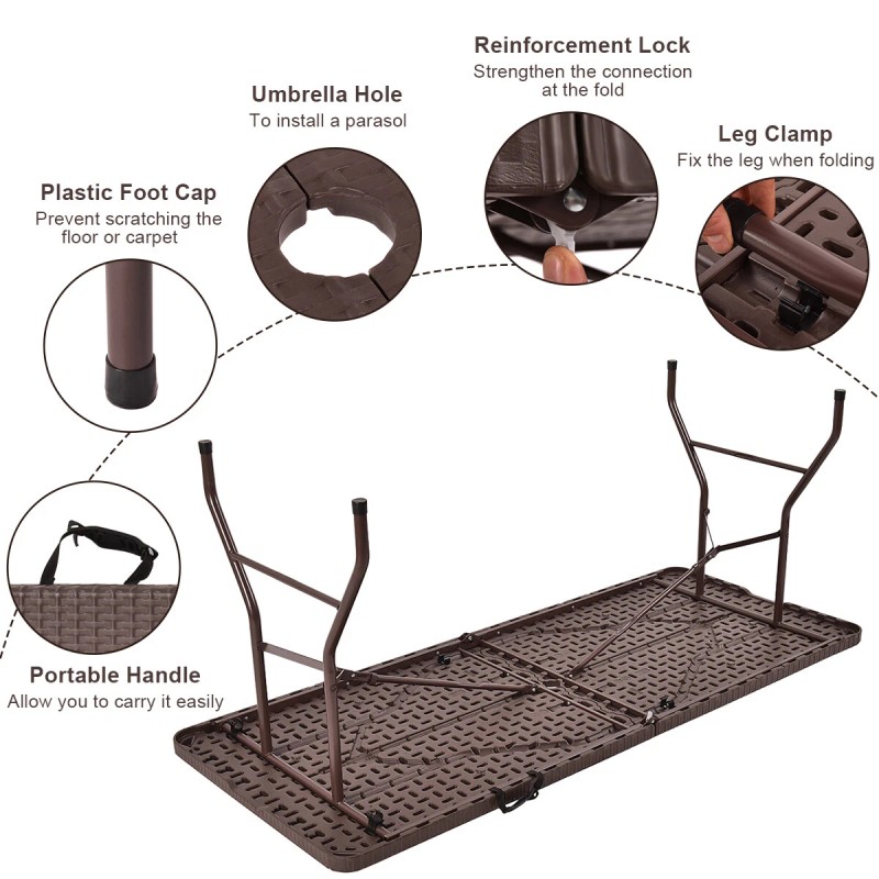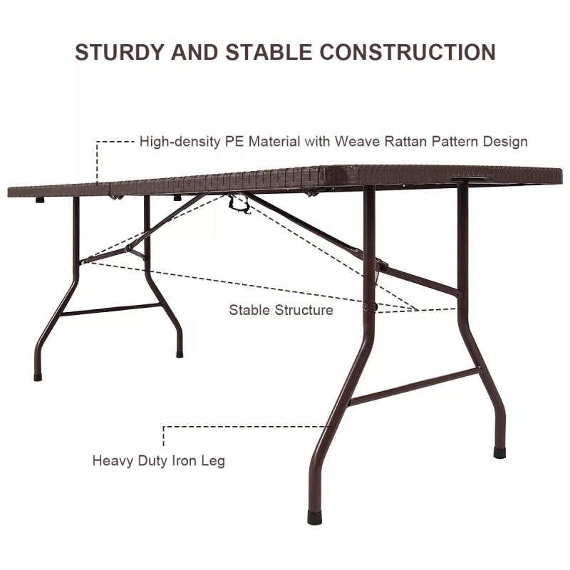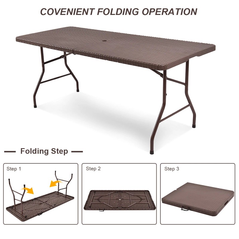 Patiojoy 6' Folding Table Rattan Portable Indoor Outdoor Picnic Party Dining Camping