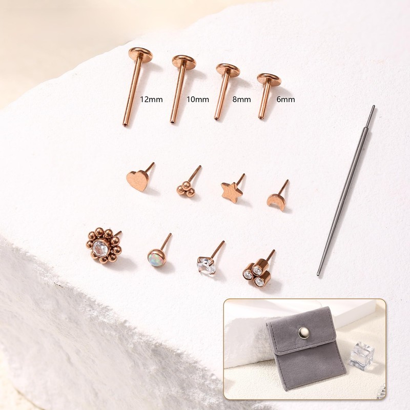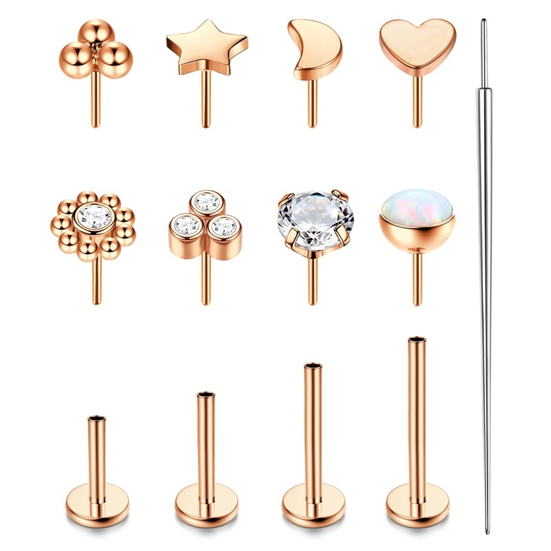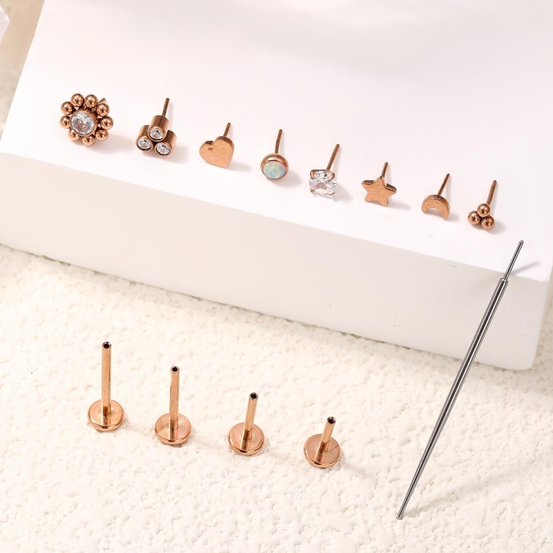 - TRAGUS PIERCING JEWELLERY-- 1 Order You Will Get 8pcs Replacement Piercing Tops, 4 Pairs Different Length Labret Stud Posts And 1pcs Of Straight Piercing Taper. Threadless Push in Nose Stud With Flat Back, Easy To Put In Or Remove. 1PC Piercing Taper Insertion Pin. ONE LABRET POST TO FIT ALL THESE THREADLESS ENDS. Exceptionally High Quality Labret Piercing Jewellery, Meet Your Different Needs In Daily Wearing
