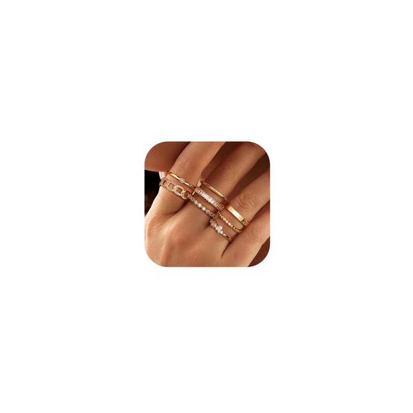 PATISORNA 8PCS Gold Rings for Women Non Tarnish 14K Gold Cubic Zirconia Ring Set Thin Stacking Statement Band Rings Stackable Ring Size 5-10