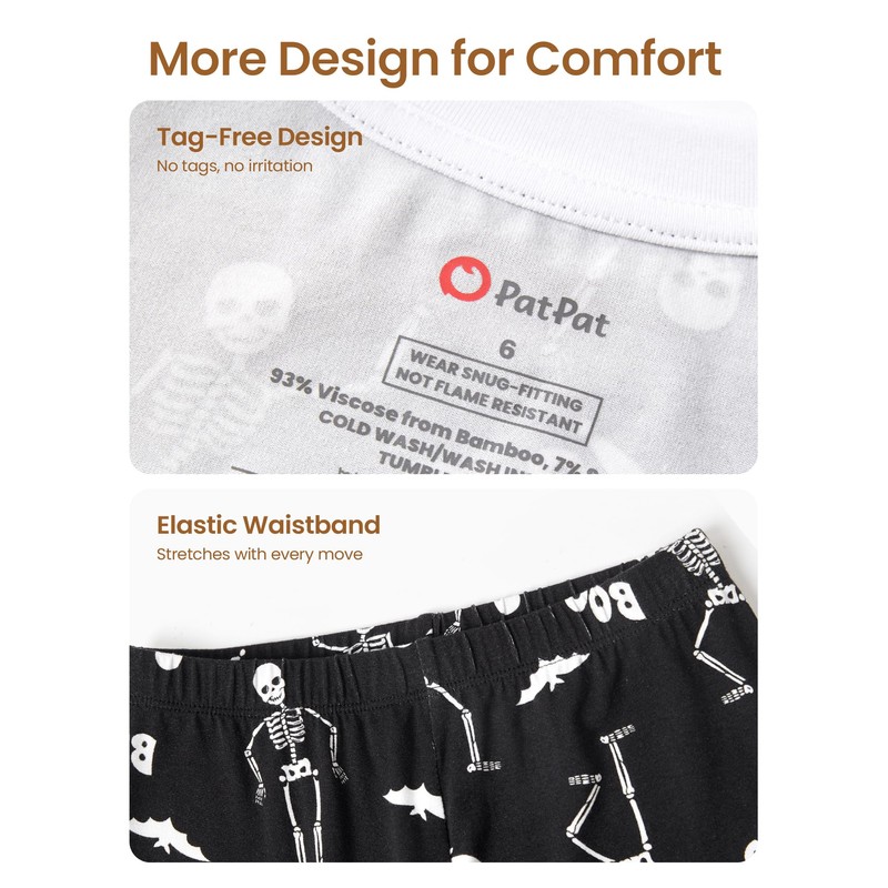 PATPAT Toddler Kids Pajama Sets with Bamboo Viscose - 2 Pieces Soft Snug Fit Pjs for Boys and Girls,All-Season Comfort Sleepwear, Black Skeleton Boo, Size 10 Years