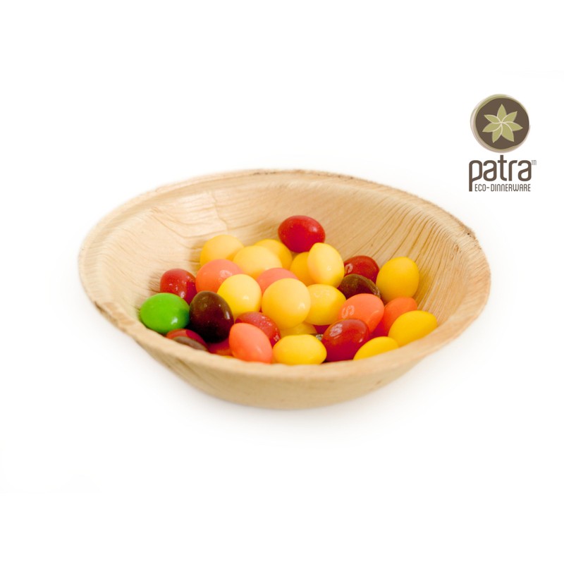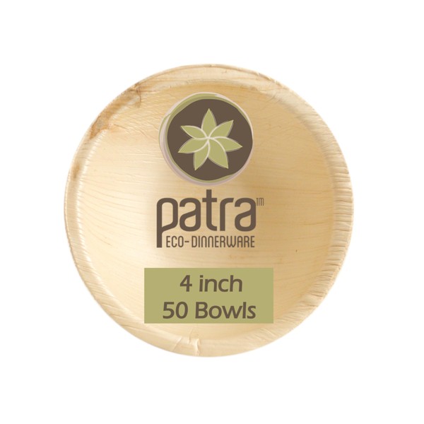Patra 50pcs - 4 Inch Round Palm Leaf Bamboo Mini Bowls Appetizer Dipping Side Plates | Condiments Dish | Sliders | Dessert | Disposable | Eco Friendly | Biodegradable | Backyard Compostable
