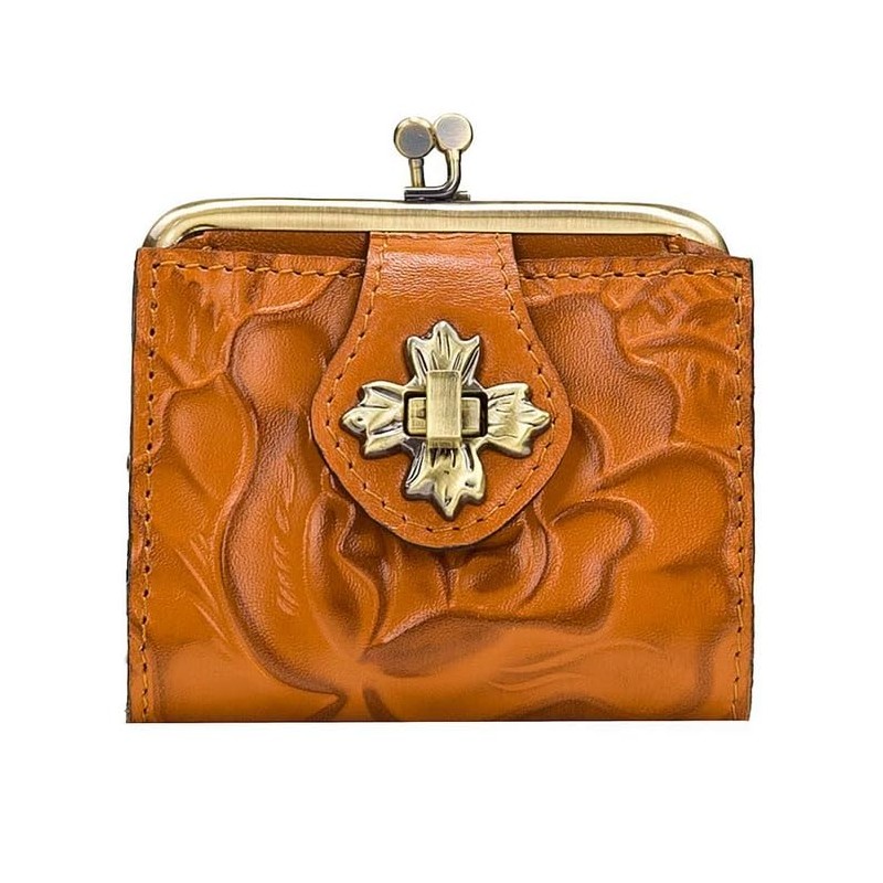 Patricia Nash Casella Leather Bifold Wallet (Cognac Rosetool)