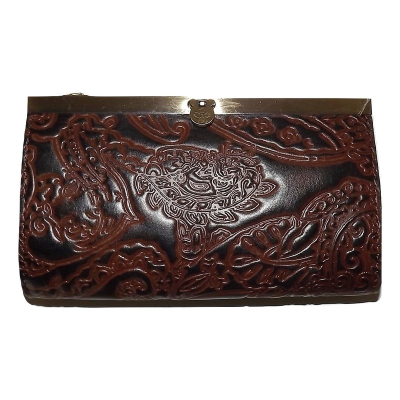 Patricia Nash Tooled Leather Cauchy Frame Clutch Wallet Dark Brown