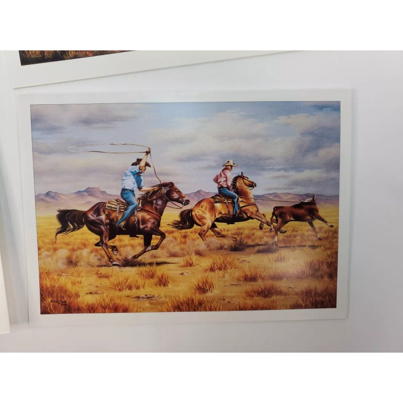 Patricia Paulk BLANK Notecards & Envelopes 18 Pk. Oil Painting "Team Work" Cowboys 5" x 7"