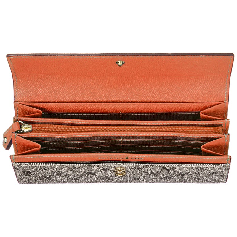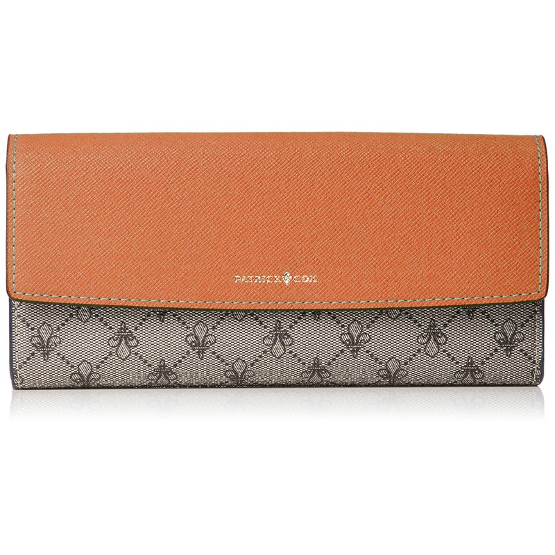 Patrick Cox Long Wallet, Rich Fleur-de-Lis Print, PVC/Cowhide Leather Combination, Button-Flap Model