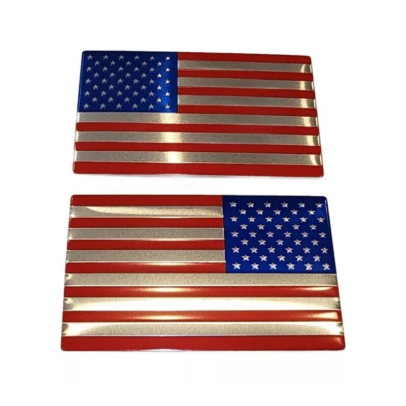 Patriot Emblems 3"x5" Red Blue Chrome Left & Right Aluminum American Flag Decal Car Truck Emblem