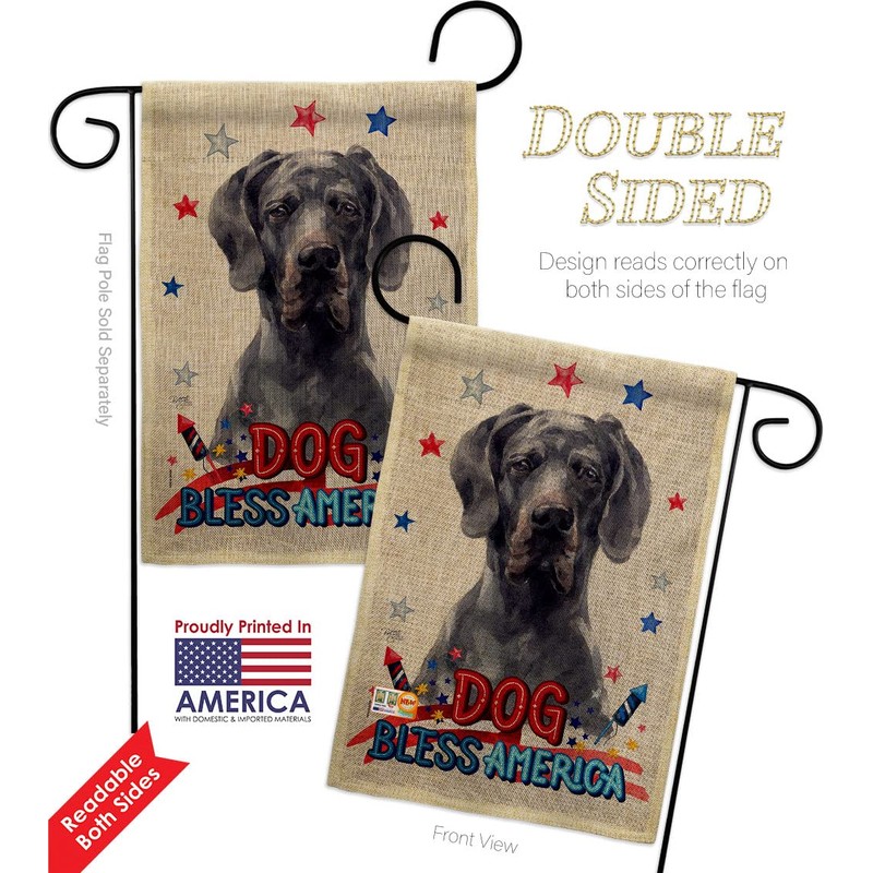 Patriotic Black Great Dane Burlap Garden Flag Set with Stand Animals Dog Puppy Spoiled Paw Canine Fur Pet Nature Farm Animal Creature Small Gift Yard House Banner Double-Sided Made In USA 13 X 18.5
