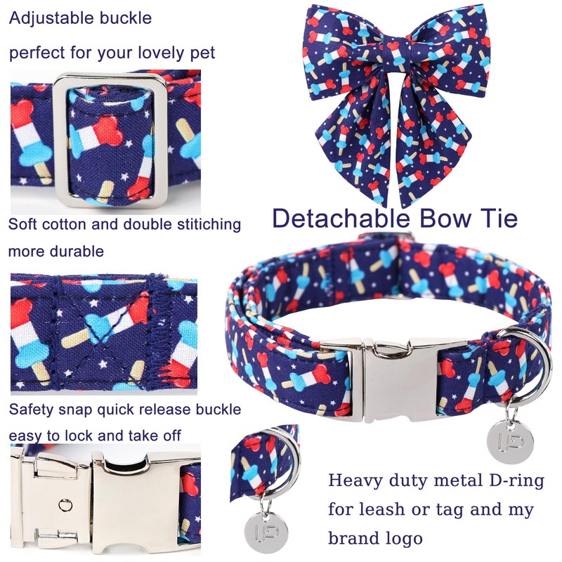 - AMERICAN FLAG BOW TIE COLLAR: Classic American flag pattern collar is especially suitable for 4th of July. Flag dog collar better shows your dog’s patriotism. Patriotic dog bowtie is detachable and well-made with elastic loops that let you take the bow tie off and on with ease.