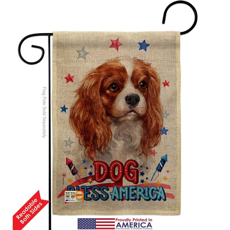 Patriotic Charles Spaniel Burlap Garden Flag Set with Stand Animals Dog Puppy Spoiled Paw Canine Fur Pet Nature Farm Animal Creature Small Gift Yard House Banner Double-Sided Made In USA 13 X 18.5