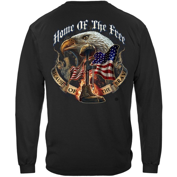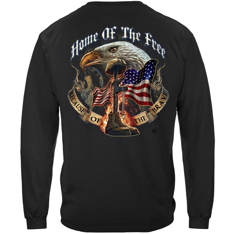 Patriotic Long Sleeve T-Shirts, 100% Cotton Casual Mens Shirts, Show Your Pride with Our Home of The Free Because of The Brave Long Sleeve Shirts for Men or Women (Medium) Black