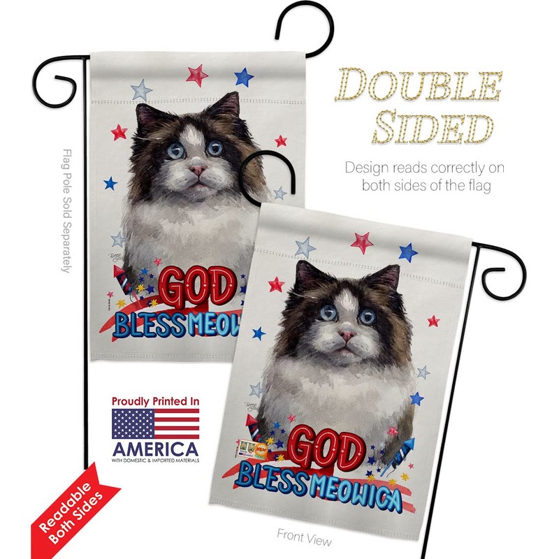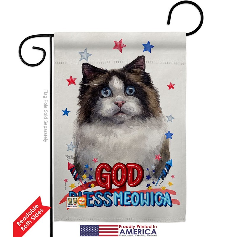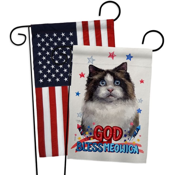Patriotic Mitted Ragdoll Garden Flags Pack Animals Cat Kitten Meow Spoiled Paw Fur Pet Nature Farm Animal Creature USA Applique Small Decorative Gift Yard House Banner Double-Sided Made In 13 X 18.5