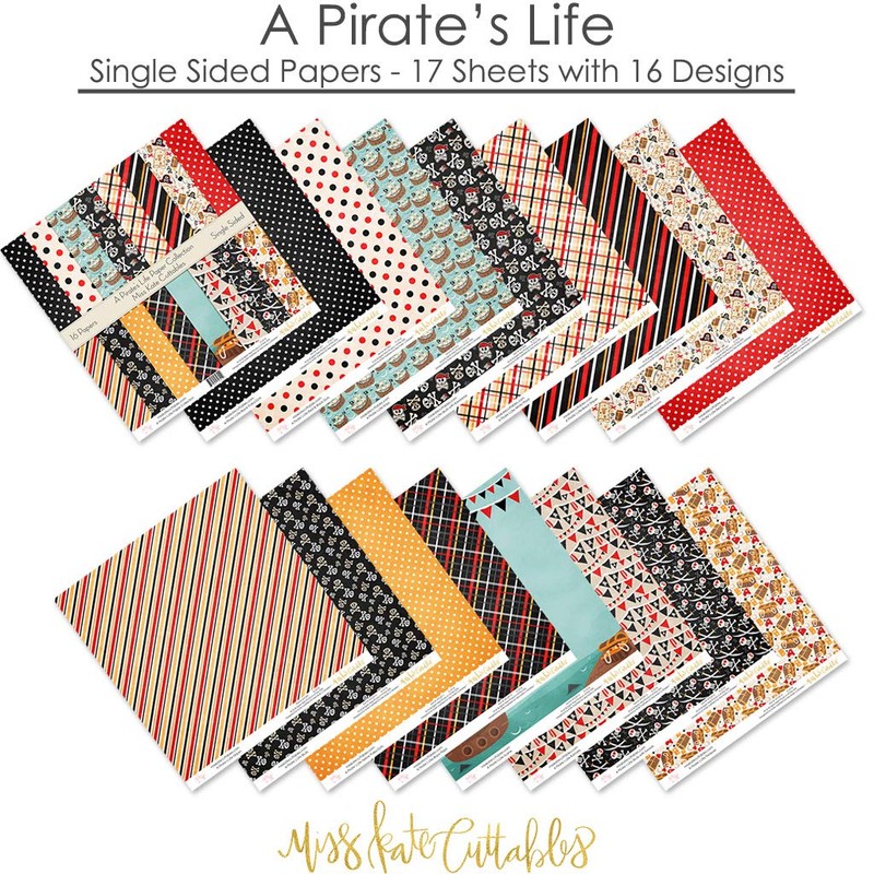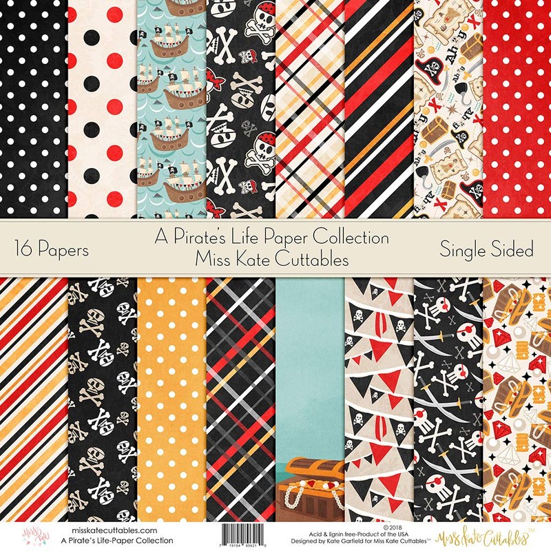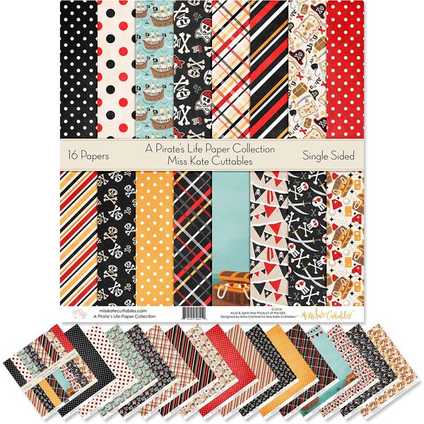 Pattern Paper Pack - A Pirate's Life - Scrapbook Specialty Paper Single-Sided 12"x12" Collection Includes 16 Sheets - by Miss Kate Cuttables