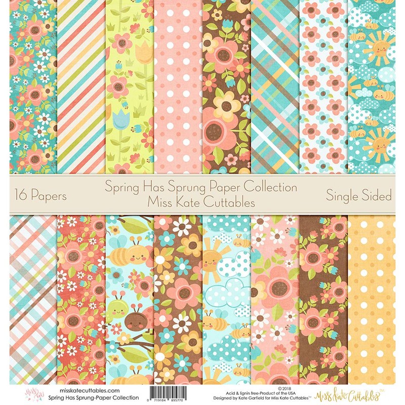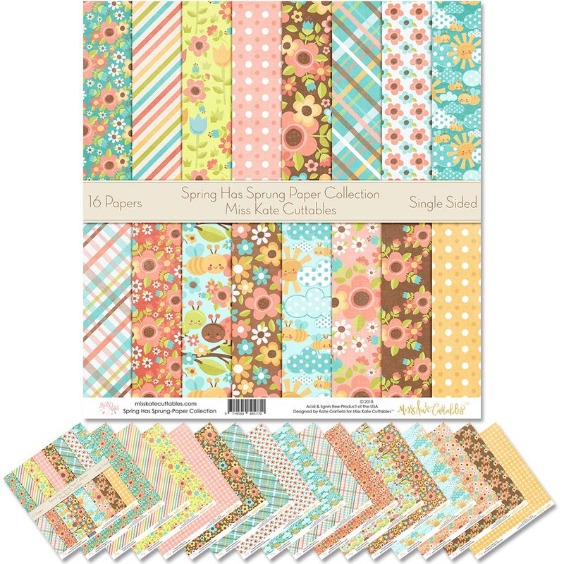 Pattern Paper Pack - Spring has Sprung - Scrapbook Premium Specialty Paper Single-Sided 12"x12" Collection Includes 16 Sheets - by Miss Kate Cuttables
