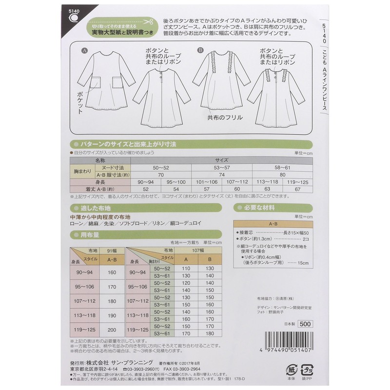 Pattern/Pattern Fit Pattern Sun Children's A-Line Dress for Kids 5140