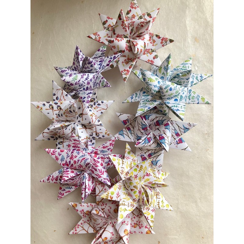 Patterned Paper Strips ~Froebel Stars, Weaving, Moravian, German Stars~ 50 strip pack~ (Spring Bird Branches, 3/4 inch)