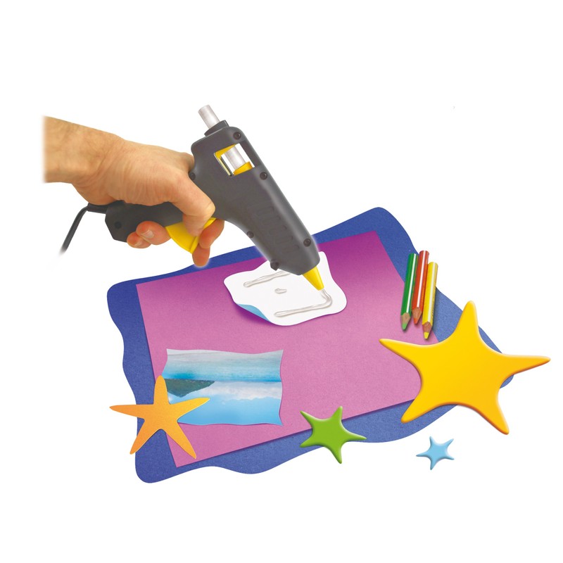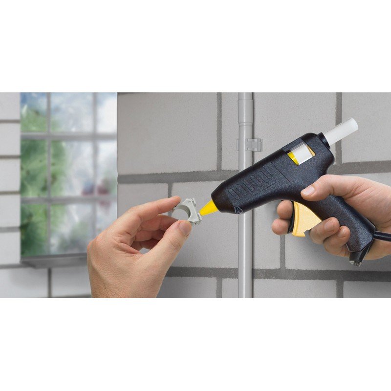 - The ergonomically shaped handle and the wide stand bracket ensure easy, clean handling and a secure, non-slip stand. Required adhesive sticks: Ø 11 mm. adhesive dries transparent. Suitable for bonding wood, paper, cardboard, leather, textile, cork, glass, metal and plastic.
