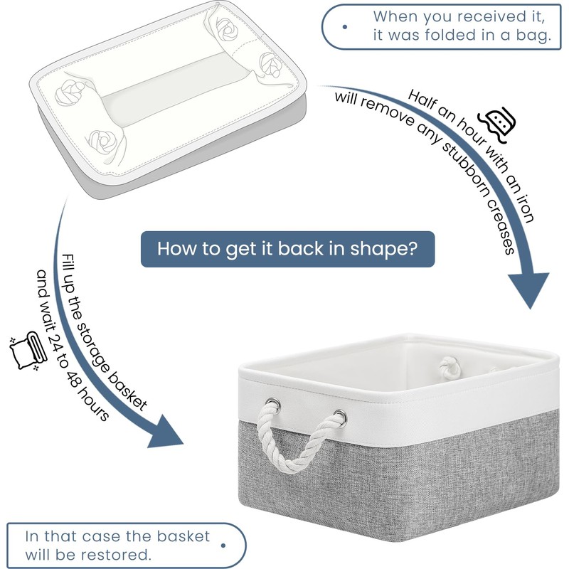 - Minimalist Design, Maximum Impact: The neutral white and grey color scheme seamlessly blends with any room decor. Whether in bedrooms, living rooms, or nurseries, these baskets enhance organization while adding a touch of style.