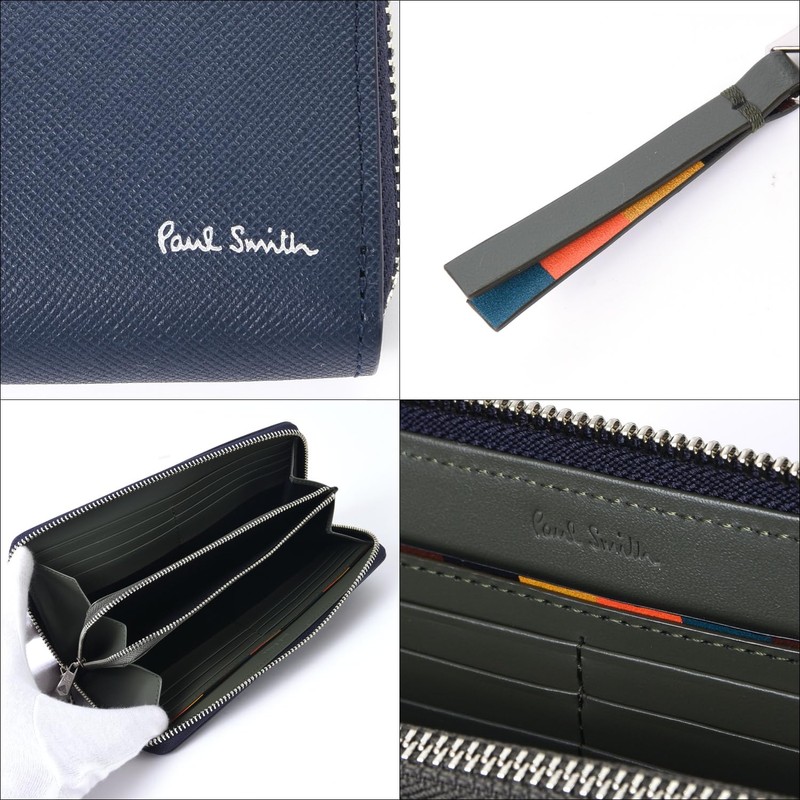 Paul Smith 813019 P917 Bright Stripe Puller SS24 Long Wallet with Genuine Storage Box & Cleaning Cloth, 02.navy