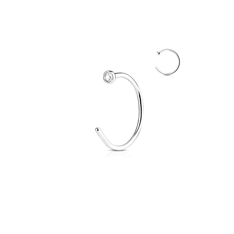 - Clear Gemmed Top 316L Surgical Steel Nose Hoop Ring