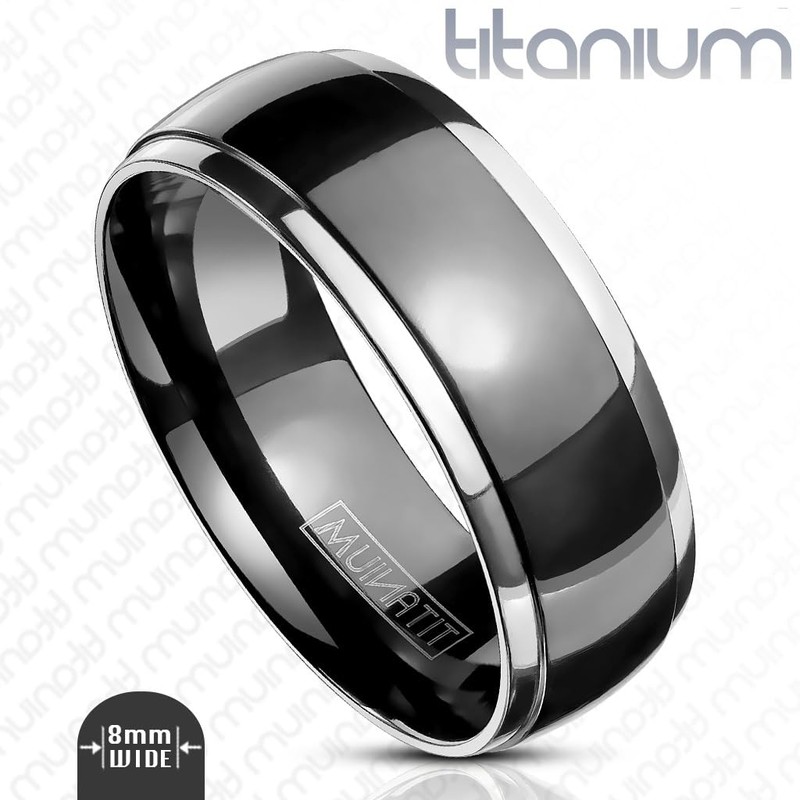 Paula & Fritz Titan Ring silver 4mm wide Band Ring with black Band and Dome a...