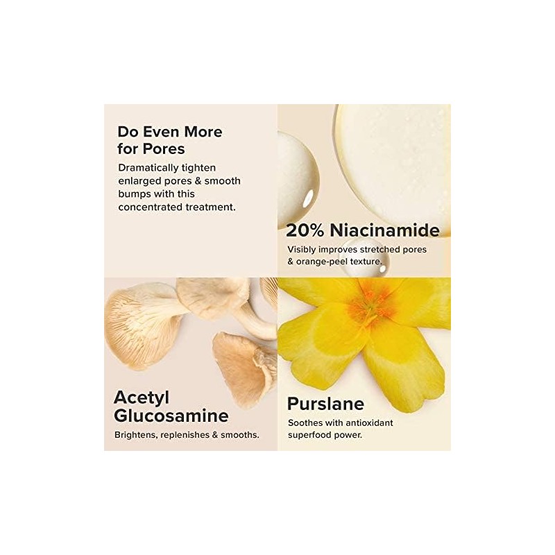 High-Strength 20% Niacinamide: Visibly reduces the appearance of large pores and skin discolouration.