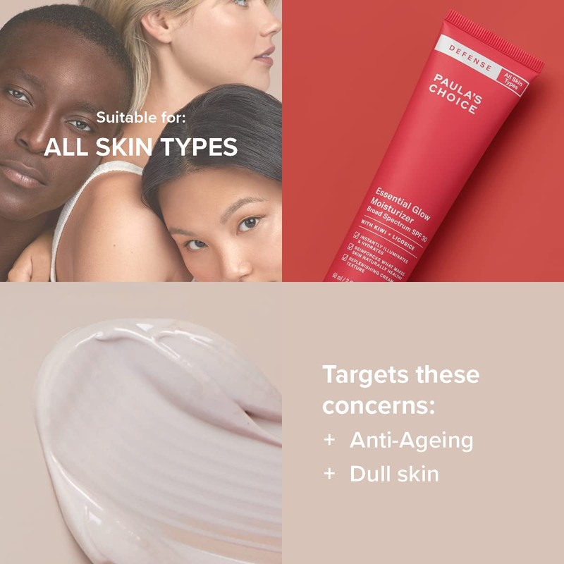 Paula's Choice Defense Glow Day Cream SPF 30, Mineral-Based Sun Cream with Zinc Oxide & Argan Oil, Anti-Wrinkle Moisturising Cream for the Face, All Skin Types, 60 ml