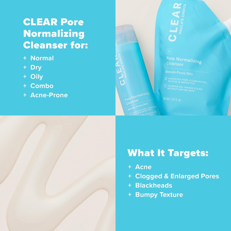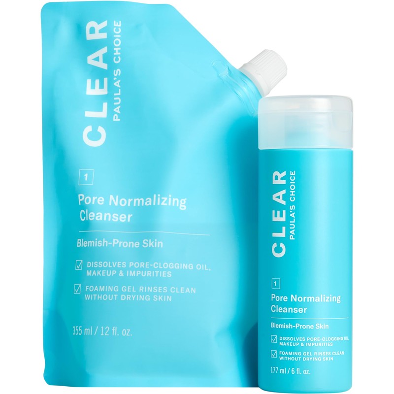 Paula's Choice Paula's Choice CLEAR Pore Normalizing Cleanser Bottle + Refill Pouch Kit, Salicylic Acid Daily Face Wash Duo for Acne, Blackheads, Large Pores & Redness, Set of 2