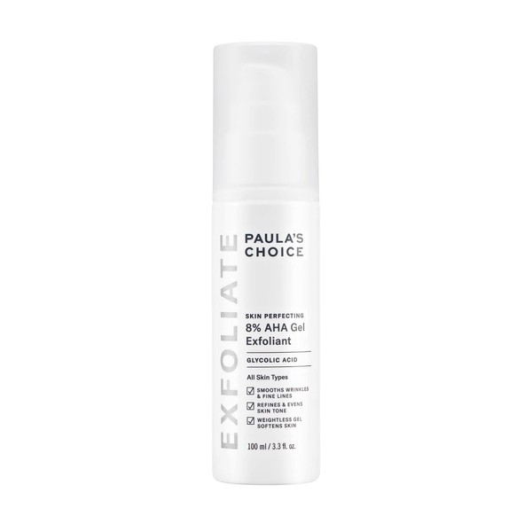 Paula's Choice SKIN PERFECTING 8% AHA Exfoliant, Gel Exfoliant with Glycolic Acid Chamomile & Green Tea, Leave On Gentle Face Exfoliator for All Skin Types, Fragrance- Free, 3.3oz