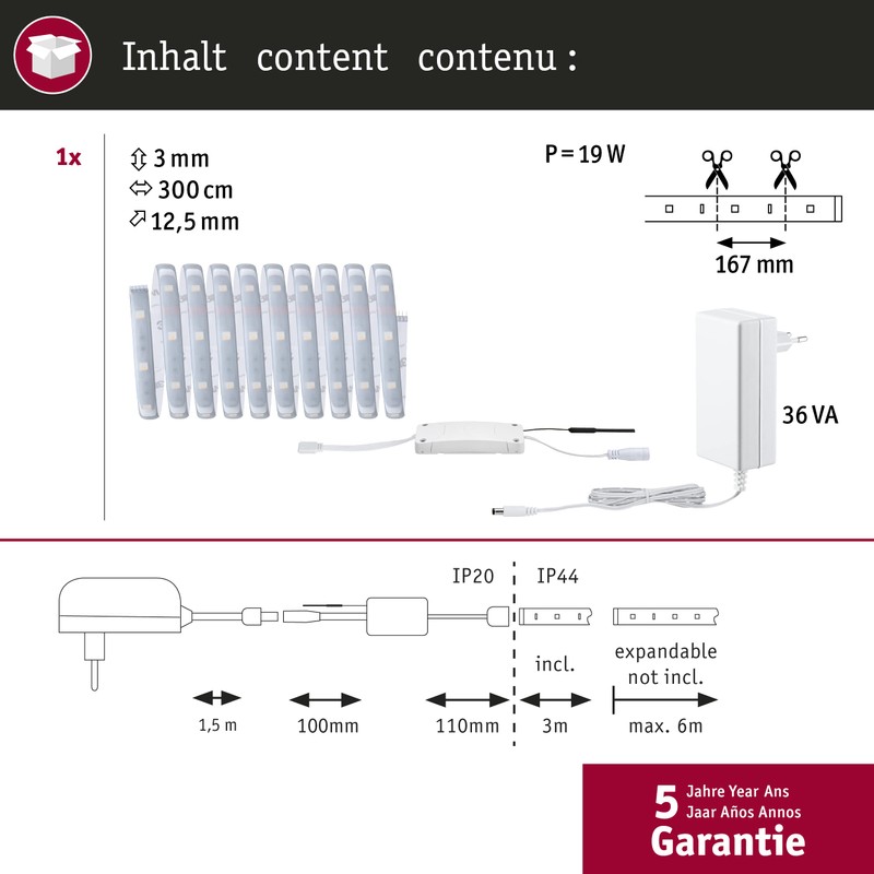 Paulmann 78866 LED Stripe MaxLED 250 Basic Set Smart Home Zigbee 3 m IP44 15W...