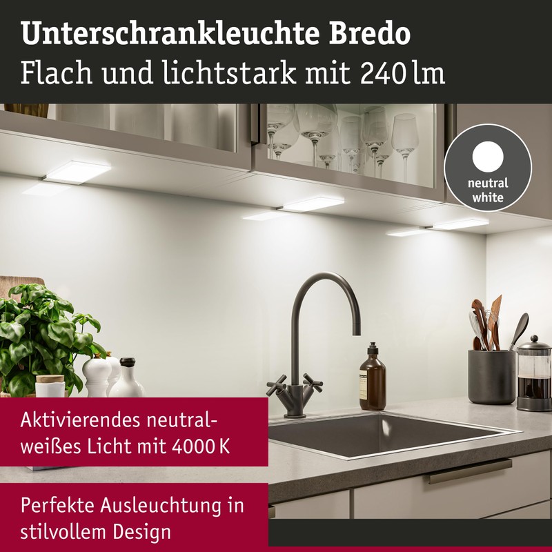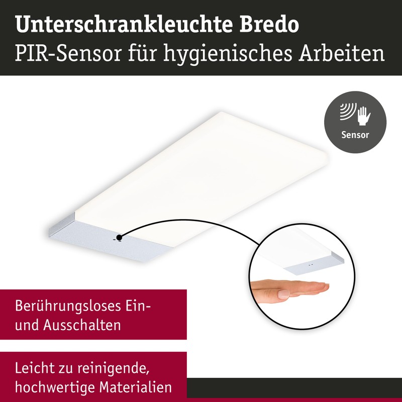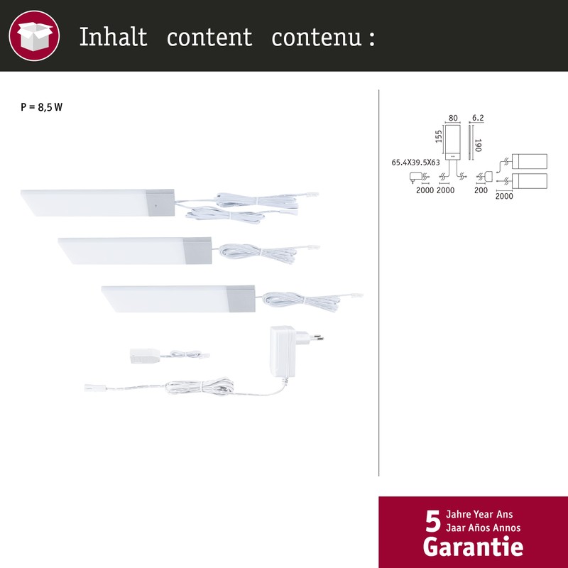 Paulmann Bredo 92122 LED Under Cabinet Light with Proximity Sensor Set of 3 4000 K 2.5 W 80 x 190 mm 180 lm Silver Furniture Surface Light