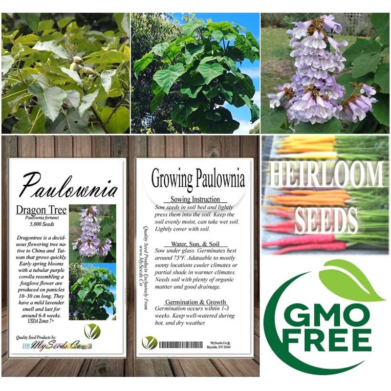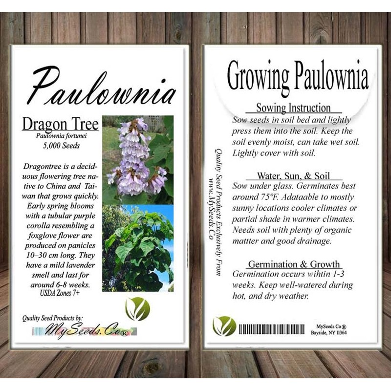 Paulownia fortunei (Dragon Tree) Tree Seed, Large, Showy, Upright Clusters, Creamy White to Pale Lavender; Tube-Like Flowers, You Choose The Quantity (5 Packs)
