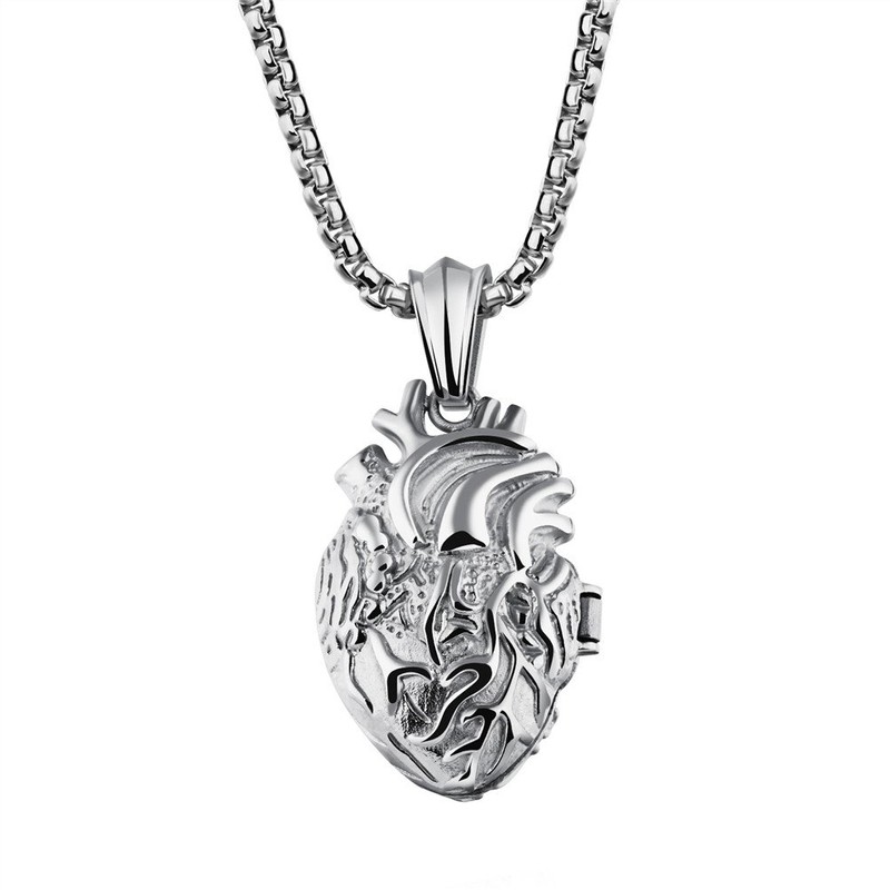 PAURO Men's Stainless Steel Anatomical Heart Pendant Necklace Black/Gold/Silver, Locket Style, Stainless Steel