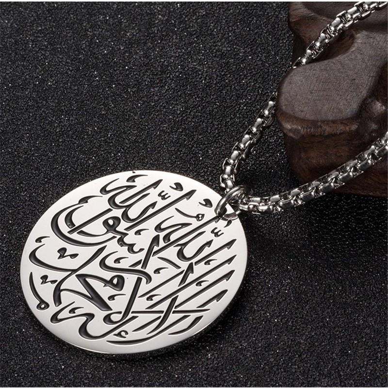 PAURO Men's Stainless Steel Round Religion Charm Pendant Necklace 24 Inches Chain Silver