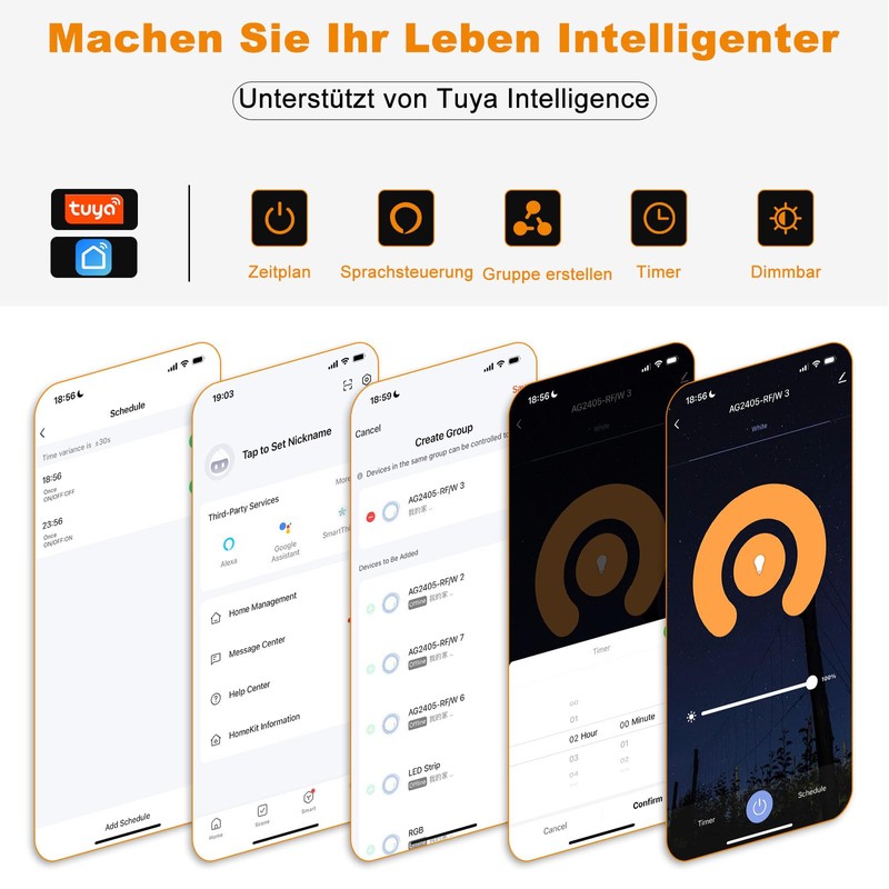 • Dimmable: The PAUTIX COB LED strip light comes with a WLAN controller and an RF remote control. You can control it via your mobile phone app, remote control, controller or voice devices. If there are several PAUTIX 7.5 m strips in your home, you can pair the remote control with any controller or create a group in the app, so you can control strips at the same time with the same remote control or app.