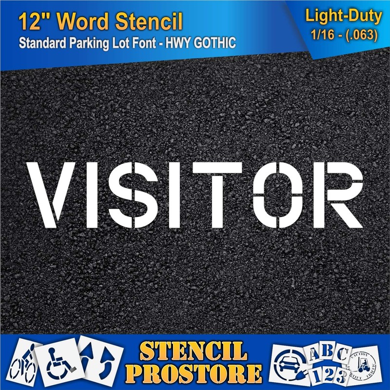 Pavement Marking Stencils - 12 inch VISITOR Stencil in 1/16'' Light-Duty (63 mil) thickness