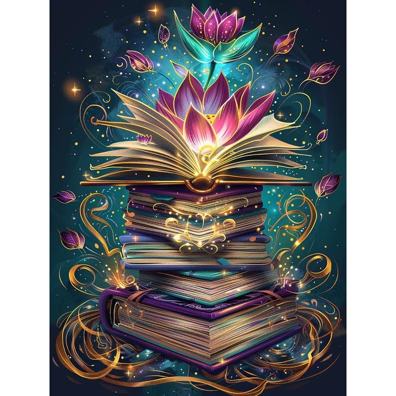 Pavemlo Diamond Painting Kits Book, DIY 5D Diamond Embroidery Painting Kits Luminous Lotus Full Drill Crystal Set Rhinestone Embroidery Pictures DIY Diamond Painting for House Wall Decoration 30 x 40